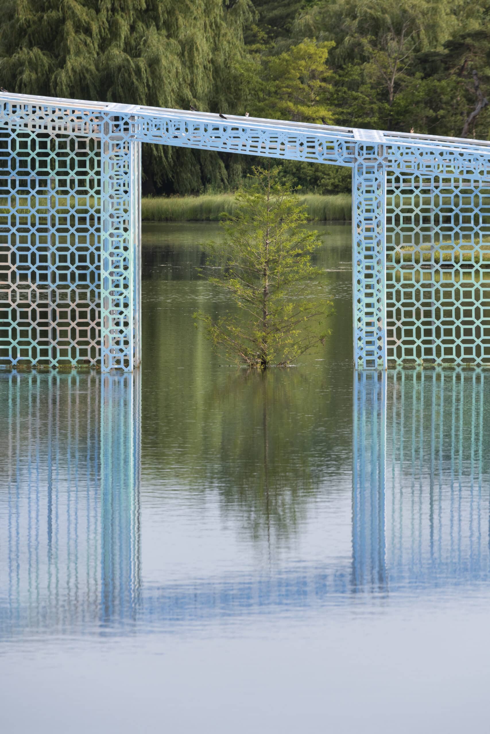 - Casa-Isla/House-Island (2022), curated by Gabriel Hutchinson, was a temporary installation commissioned for the 50th anniversary of the Chicago Botanic Garden. It marked the first time this institution displayed public art on its property. Soto’s project was led by structural engineer Bob Magruder in collaboration with Navillus Woodworks. ↩︎